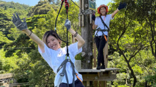 そして、フォレストアドベンチャーという森の中で体をつかって遊べる施設も出来ています。ジップコースは140㎝以上m小学4年生からでまだ遊べないので、